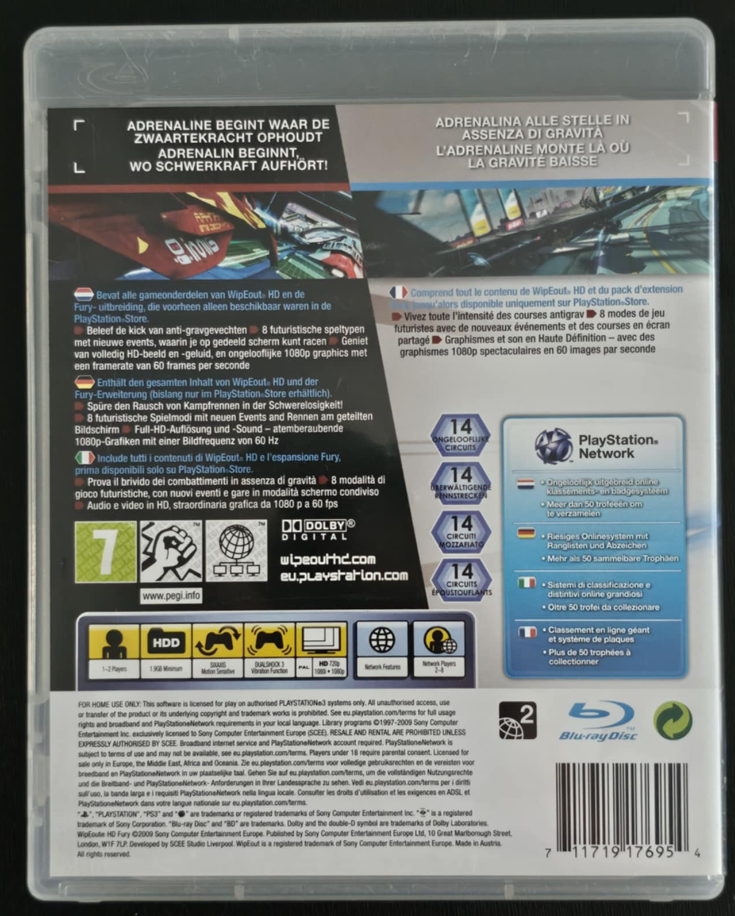 WipEout HD Fury for PlayStation 3 is a definitive futuristic racer, blending breakneck anti-gravity racing with tactical combat. The base game offered remastered classics from earlier WipEout titles in beautiful HD, while the Fury expansion injected new tracks, ships, and modes that leaned into combat and experimentation. With crisp 1080p visuals, 60fps gameplay, and a legendary electronic soundtrack, it’s remembered as one of the best racing experiences of the PS3 era and a showcase of the console’s power.