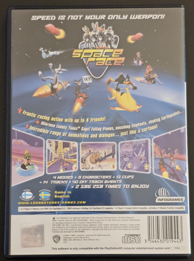 Space Race for PlayStation 2 is a fast-paced futuristic racing game that blends speed, combat, and arcade-style fun in outer space settings. With a variety of tracks, hazards, and power-ups, it provides challenging races for both single-player and local multiplayer sessions. Its focus on high-speed thrills and strategic use of weapons makes it an engaging choice for fans of sci-fi racing games on the PS2.